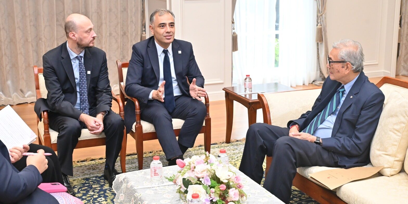 On 9 September 2025, Mr. Elkhan Rahimov, Head of Delegation, Country Cluster for for Thailand, Cambodia, Lao PDR, and Viet Nam of the International Federation of Red Cross and Red Crescent Societies (IFRC), paid a courtesy call on Mr. Tej Bunnag, Secretary General of the Thai Red Cross Society, and Dr. Apichart Chinwanno, Assistant Secretary General for International Affairs, on the occasion of assuming his new position. They discussed humanitarian cooperation with the Thai Red Cross Society, as well as collaboration with other National Red Cross and Red Crescent Societies and international organizations.