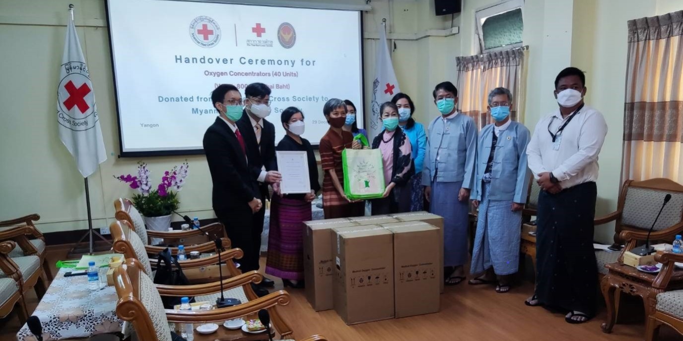 On 29 December 2021, H.E. Mrs. Suphatra Srimaitreephithak, Ambassador of Thailand to Myanmar, as representative of Thai Red Cross Society, handovers 40 units of Oxygen Concentrator to Myanmar Red Cross Society. The Oxygen Concentrators donation from Thai Red Cross Society is to support the Myanmar Red Cross Society’s humanitarian operations to fight Covid-19 pandemic. The donation was handed over to Dr. Daw Amaya Maw Naing, Vice President of the Myanmar Red Cross Society, by the Thai Ambassador at the office of Myanmar Red Cross Society.